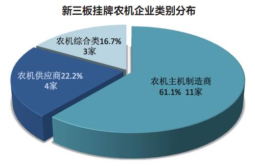 目前,农机行业在新三板挂牌企业共有18家,占总挂牌企业的0.2%,还未形成显著的集群效应。未来数年内,农机企业新三板挂牌的节奏还将加快。