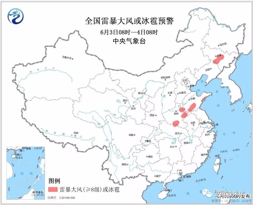 中央气象台6月3日06时继续发布强对流蓝色预警。预计6月3日08时至4日08时,吉林中南部、辽宁北部、山东南部、河南东部和南部、安徽北部、湖北北部等地的局地将有8-10级雷暴大风或冰雹天气;云南南部、广西西南部、广东南部、福建东部、海南岛东部以及内蒙古东部、吉林中南部、辽宁北部和东部、山东南部、河南东部和南部、湖北北部等地的部分地区将有短时强降水天气,小时降水量20-40毫米,局地可达50毫米以上。