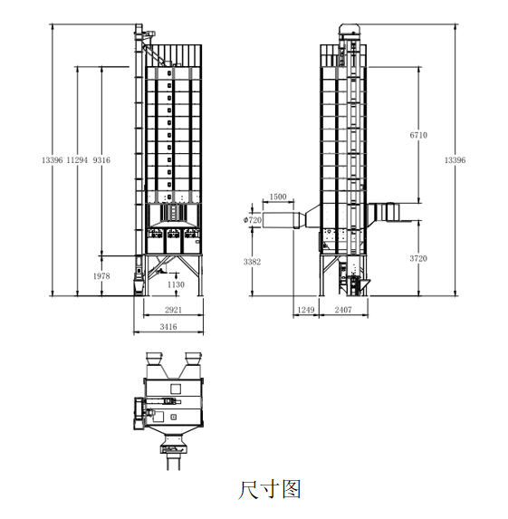 B:底部大料斗、流管、网板等粮食易磨损部位均采用高品质不锈钢材料。